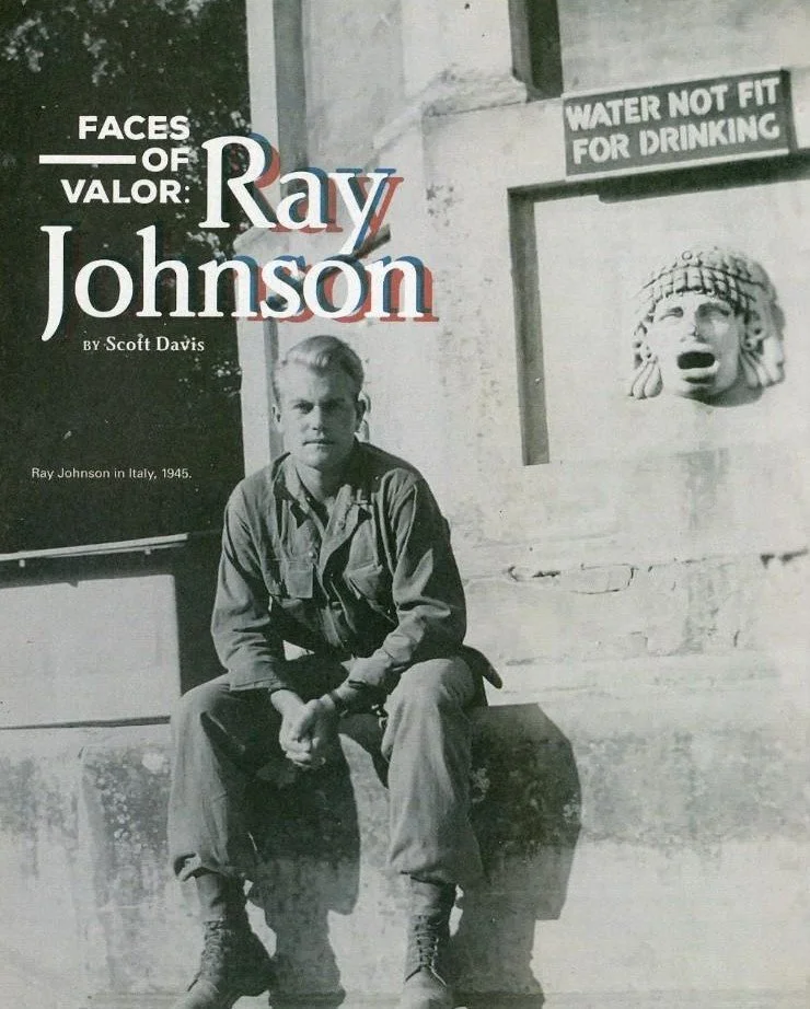 His service brought him to Italy in December 1944. Private Johnson’s unit first encountered the Germans just north of Florence, Italy in late February 1945. They ultimately chased the Germans north to the base of the Alps, near Lake Garda, Italy, at which point Germany surrendered. Over the next few months, Ray was involved in many battles, most without names, ordered to take the next hill and then the next.